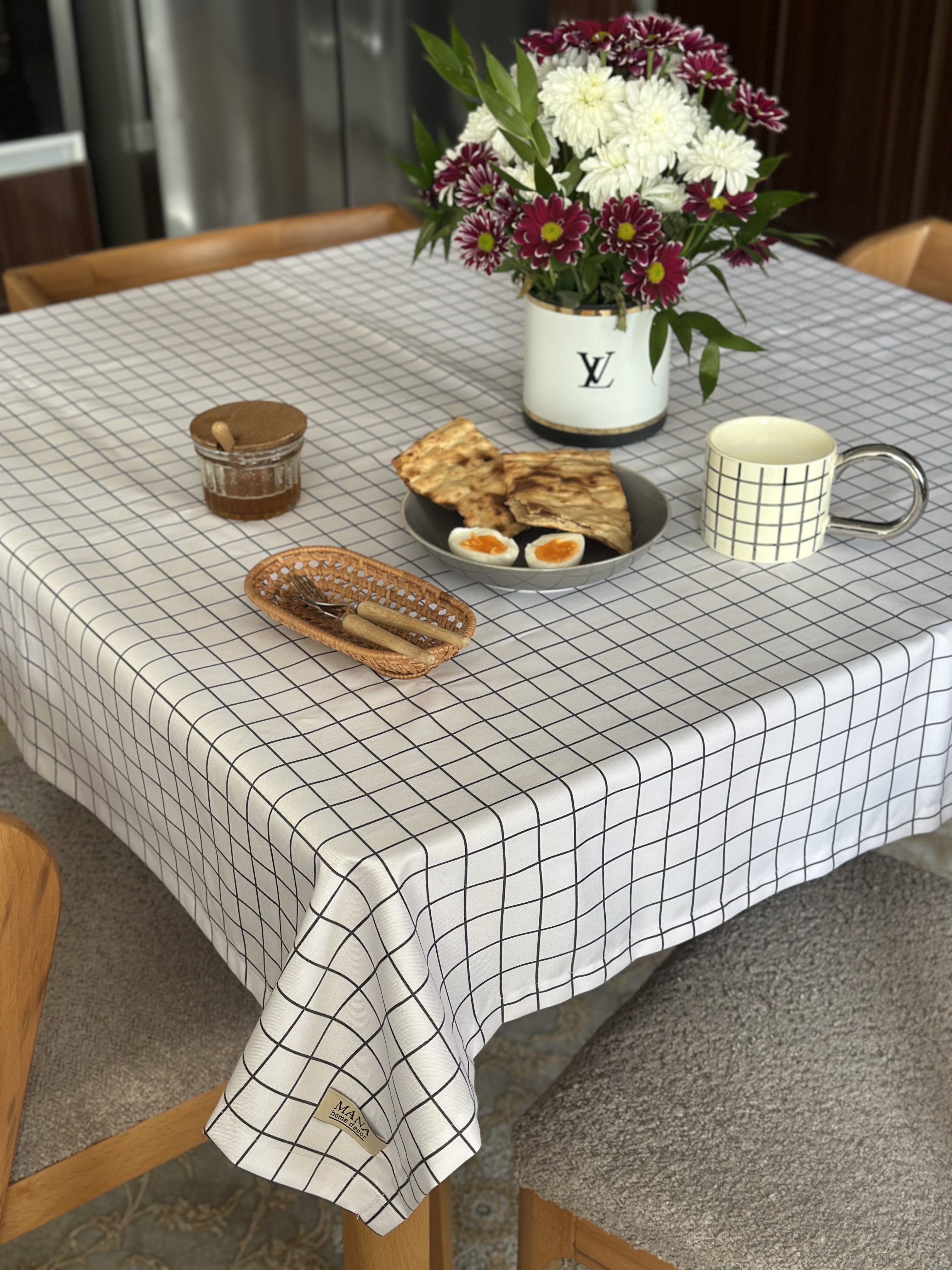 رومیزی ضدلک طرح ایکیا مقاوم در برابر وایتکس در ابعاد مختلف از دو نفره تا هشت نفره قابل سفارش ، این رومیزی به دلیل ساده بودن و دوخت زیبا و بسیار تمیزش و پارچه ی با کیفیت بسیار بادوام و مقاوم هست ، هر گونه لکه ی سخت رو میتونید با وایتکس پاک کنید رنگ پارچه و خطوط مشکی کاملا ثابت هستن.