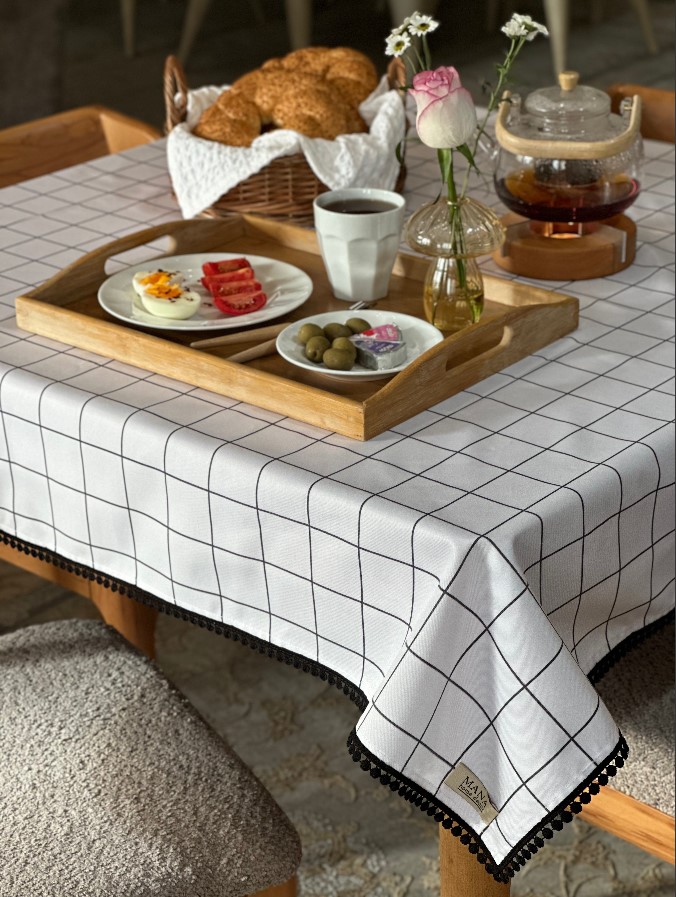 رومیزی چهارخانه طرح ایکیا با چیدمان میز صبحانه مدرن
