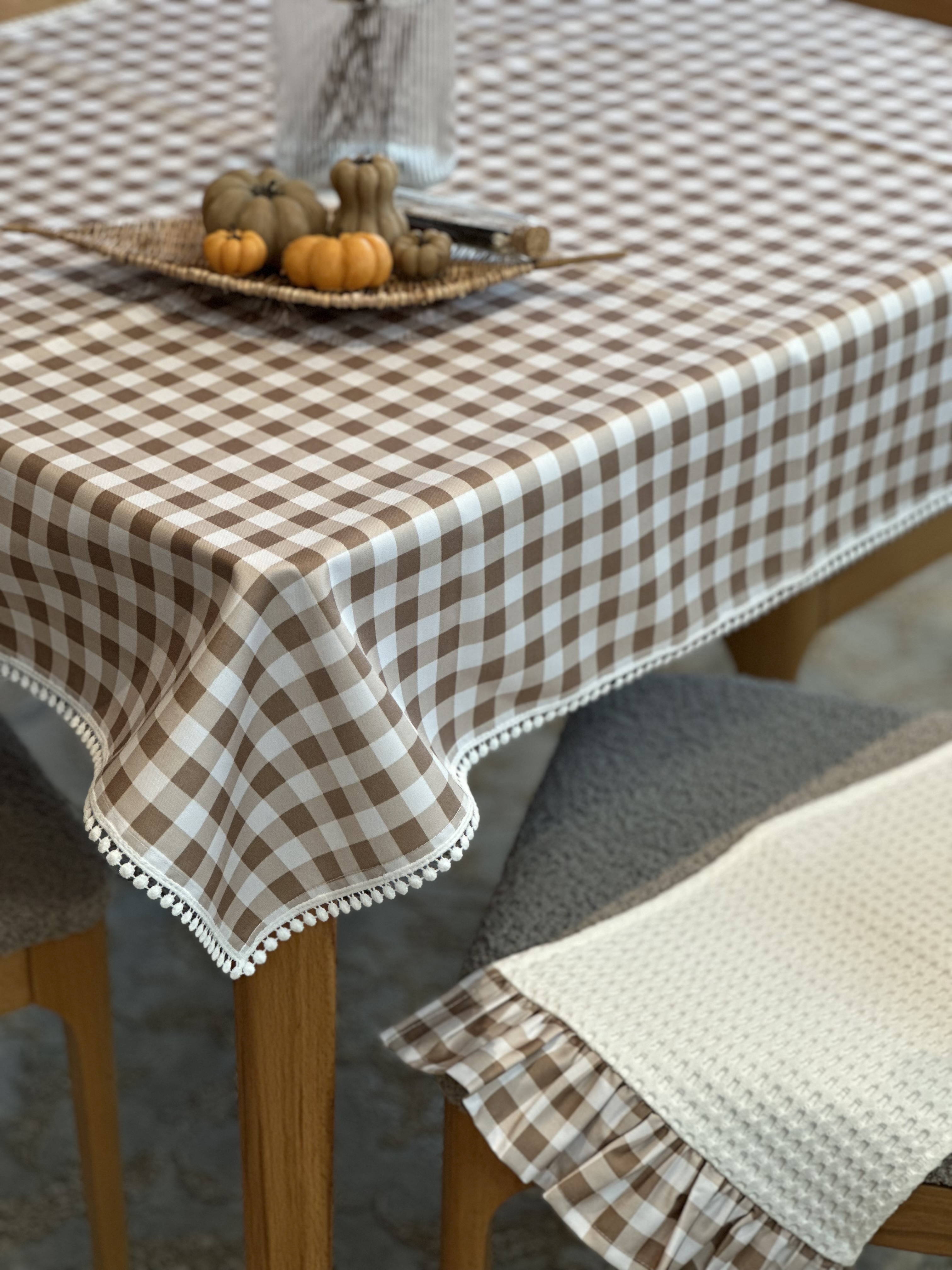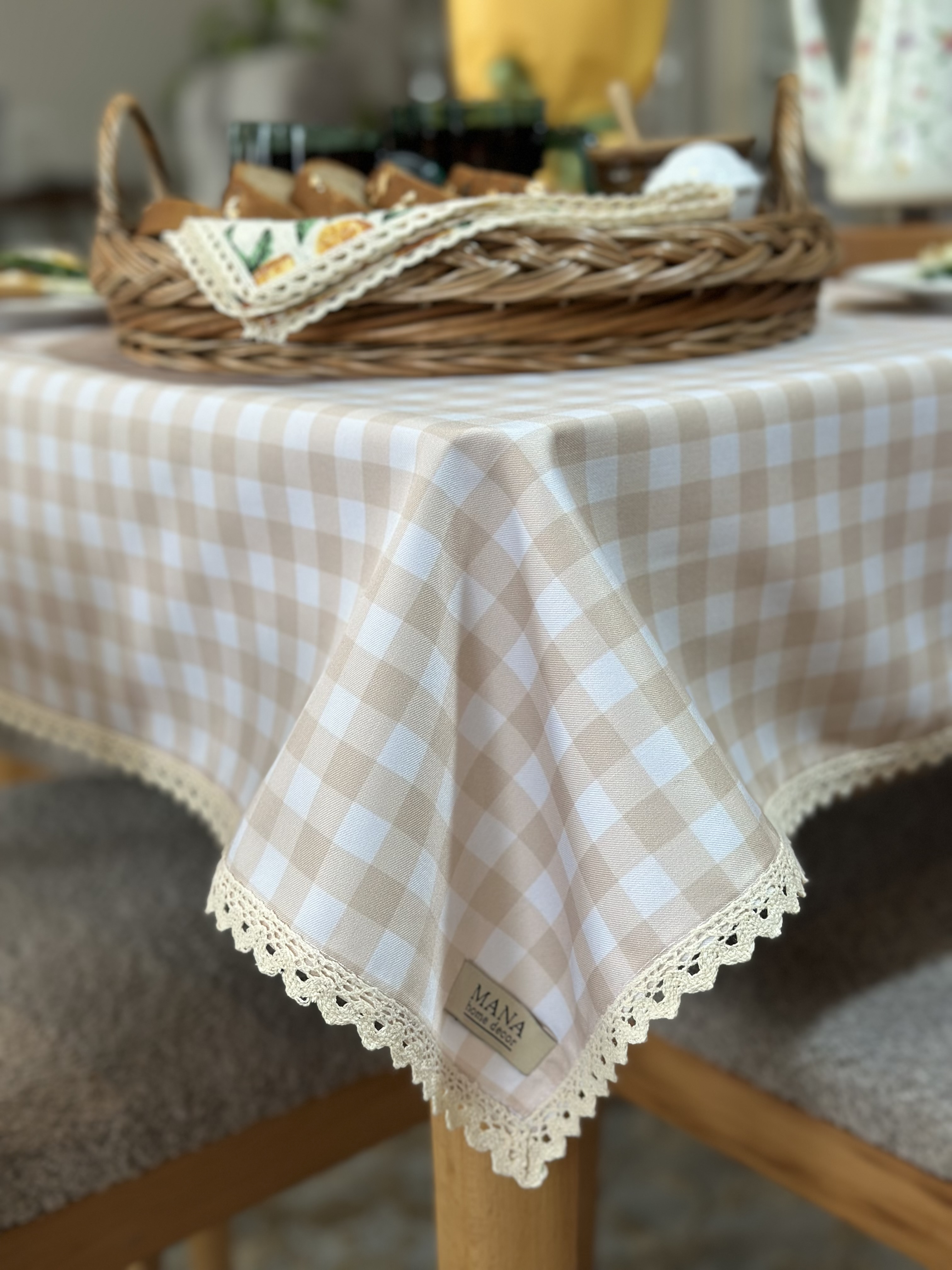 رومیزی چهارخانه نواردوزی شده مدل مانا هوم – پارچه ضدلک