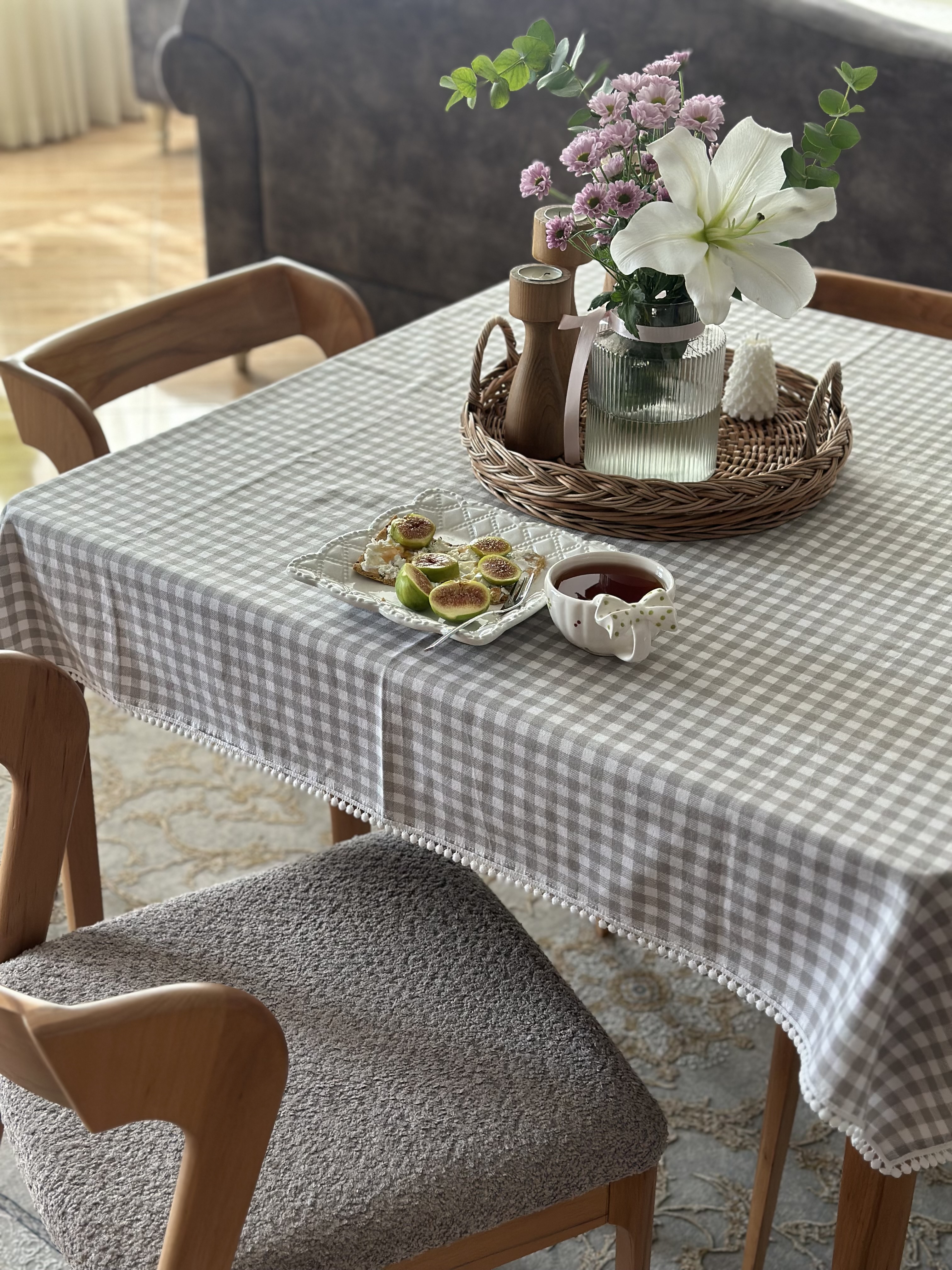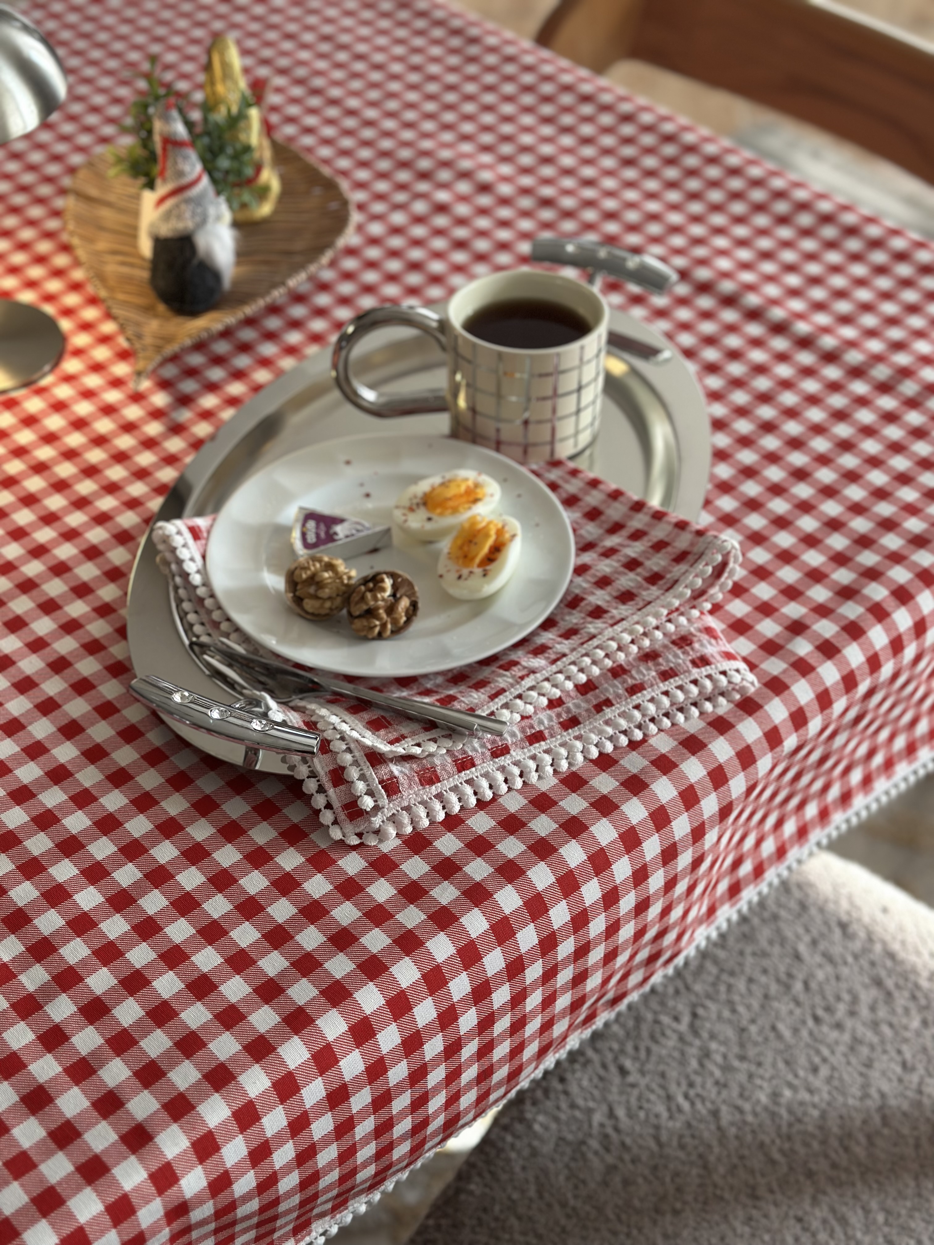 رومیزی کتان داک ترک ضد آب نواردوزی شده