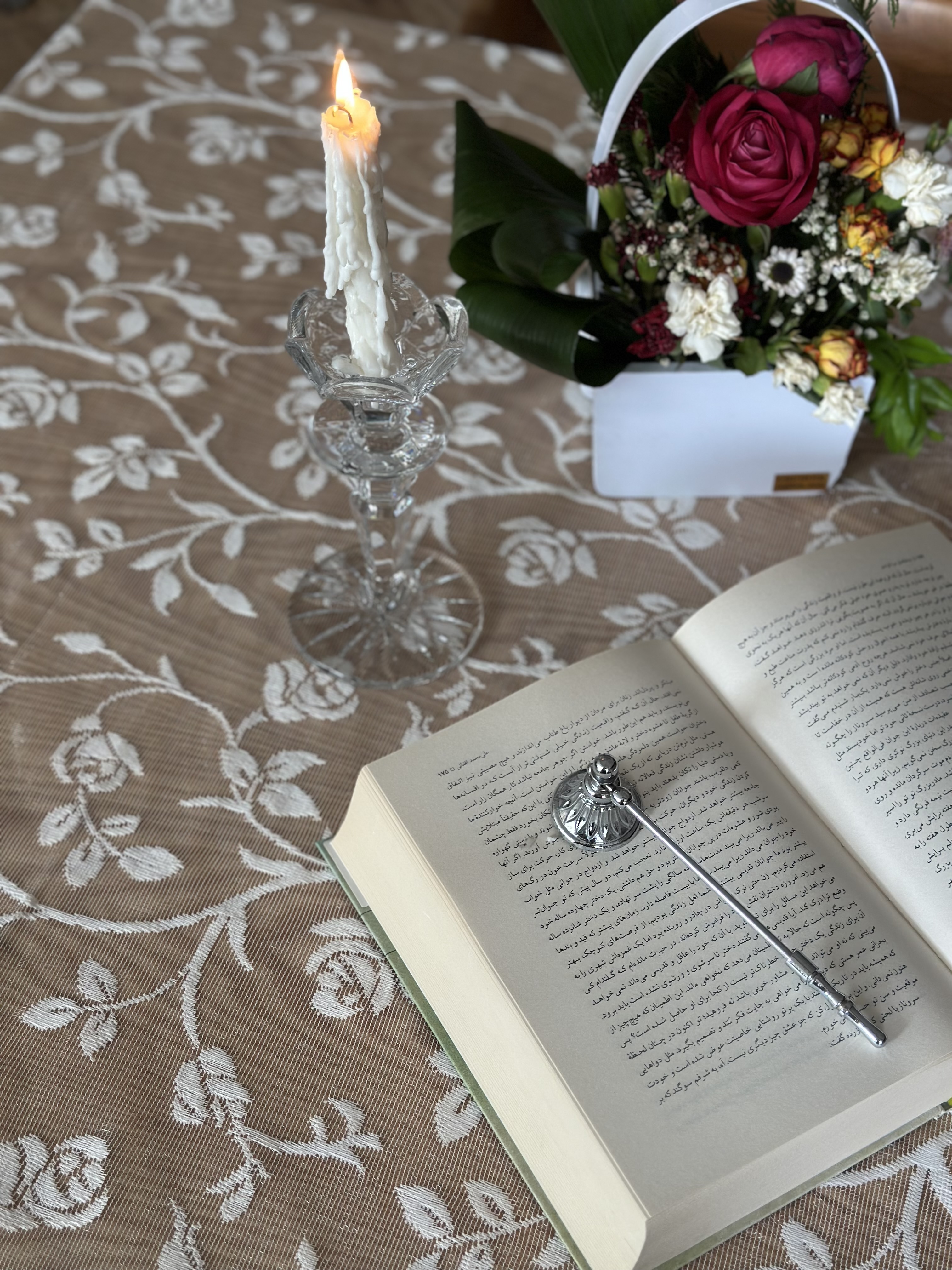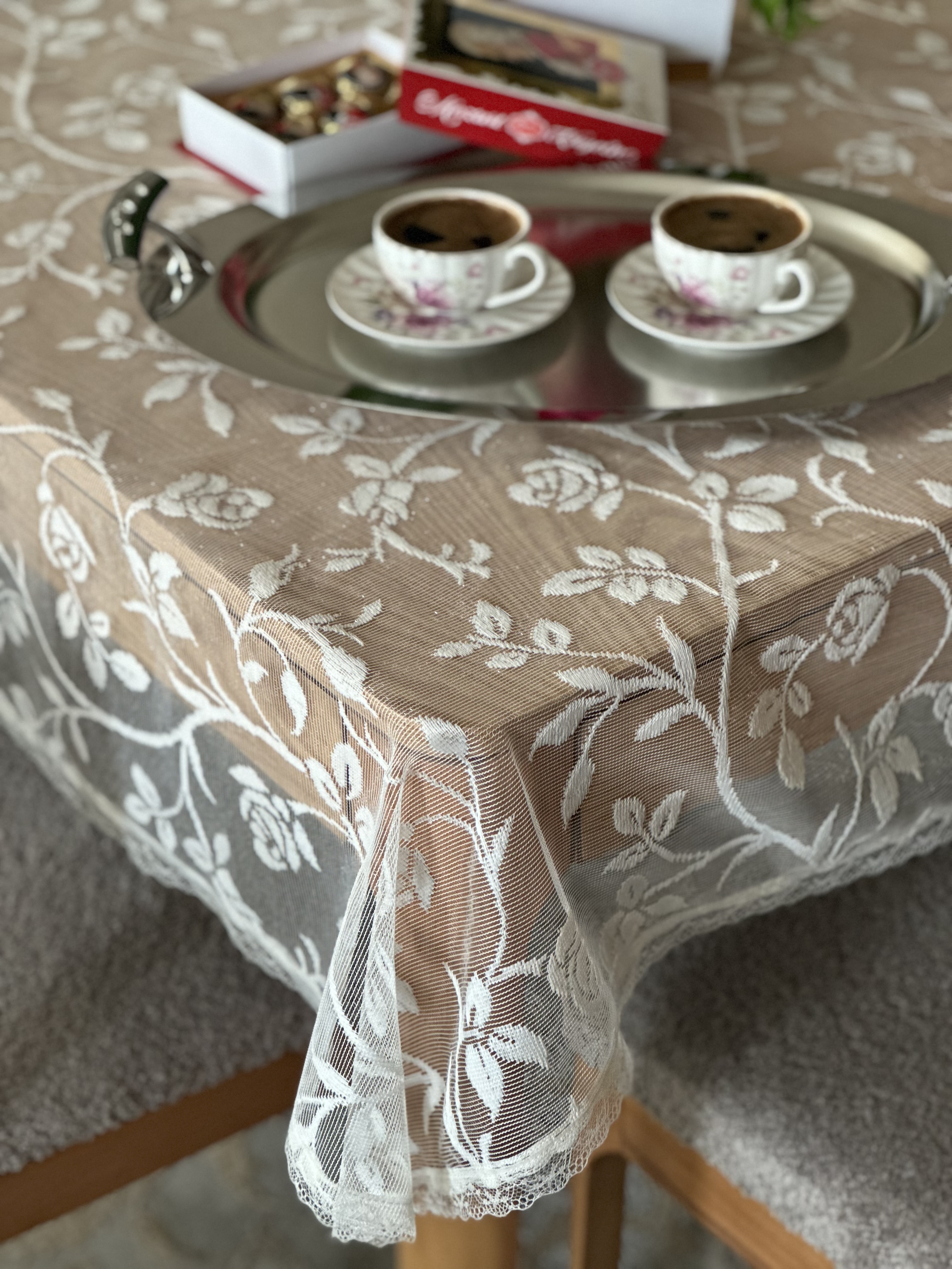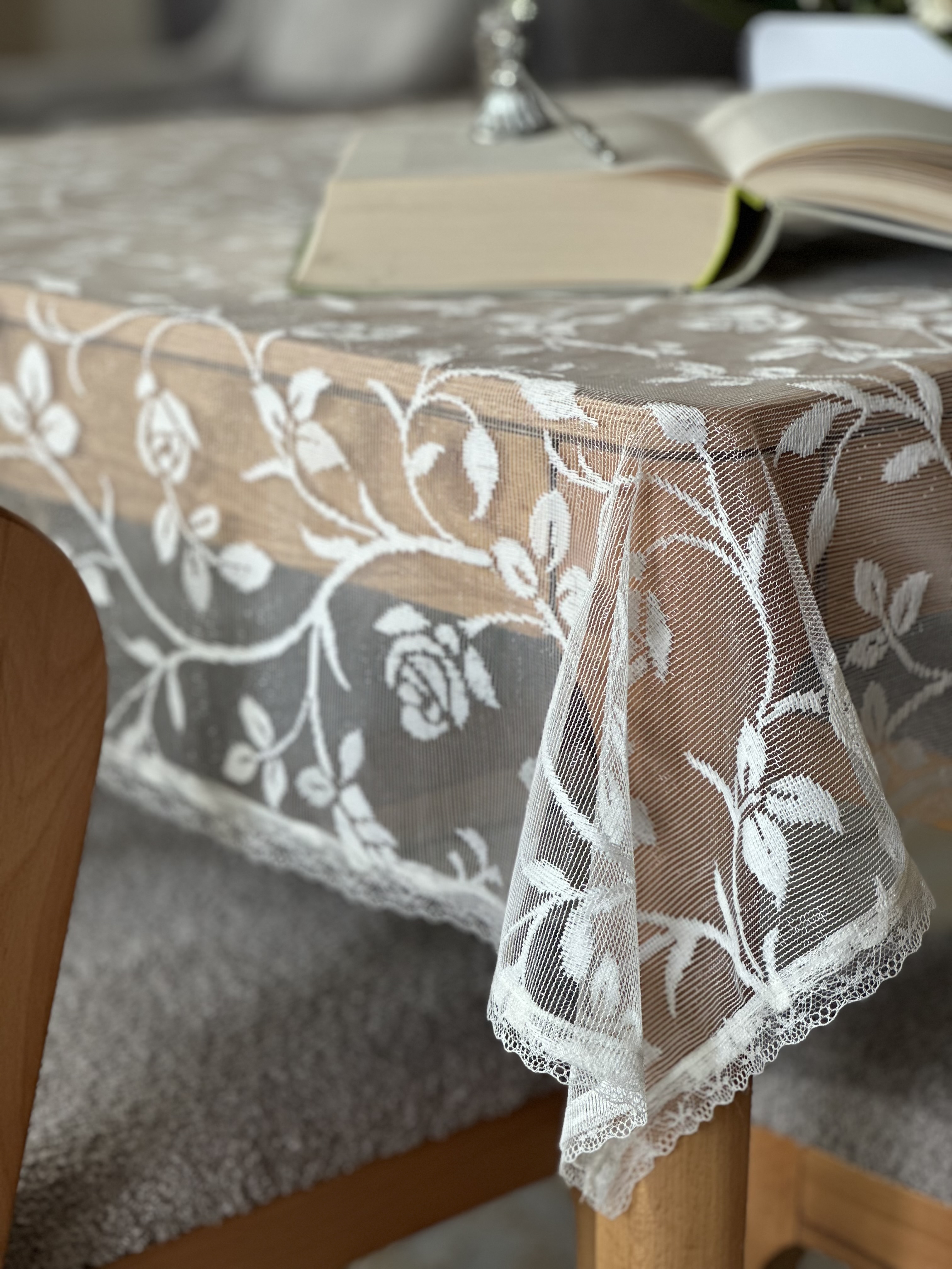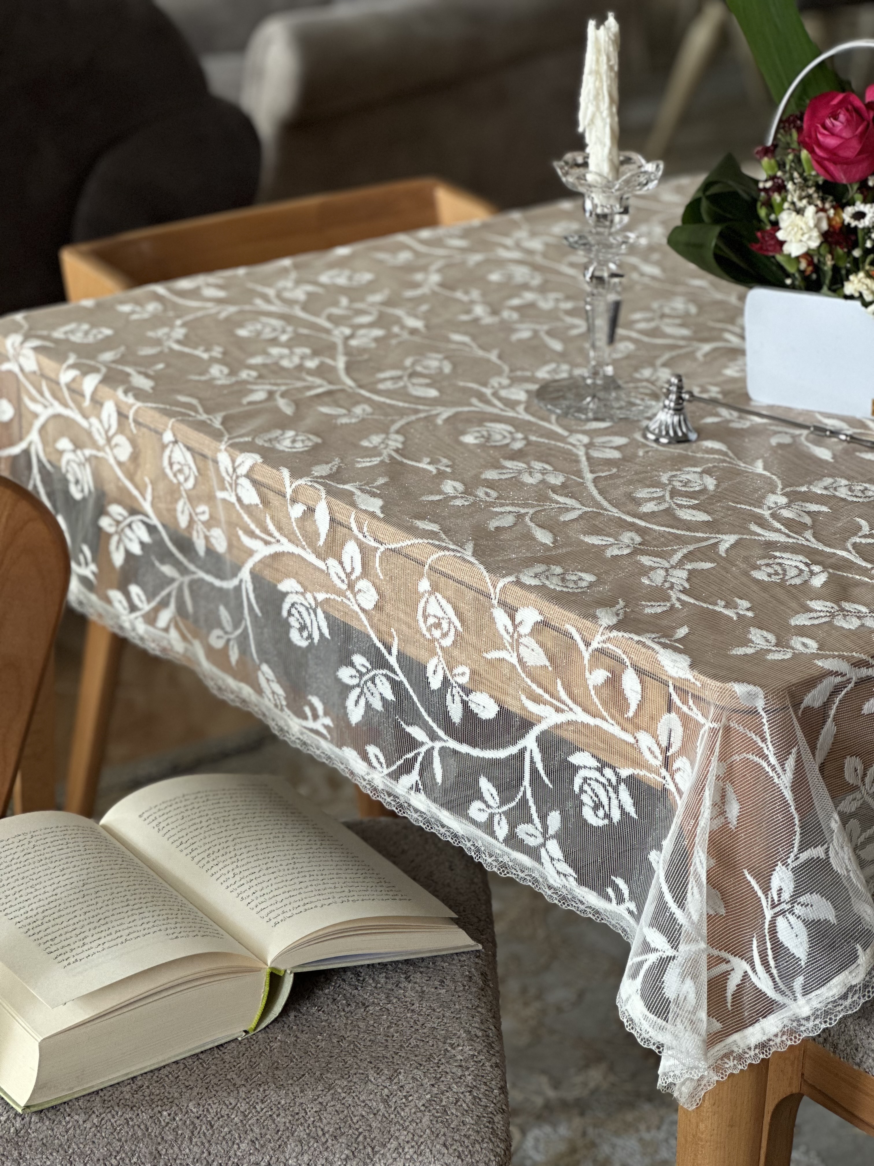 رومیزی دانتل طرح رز نواردوزی شده