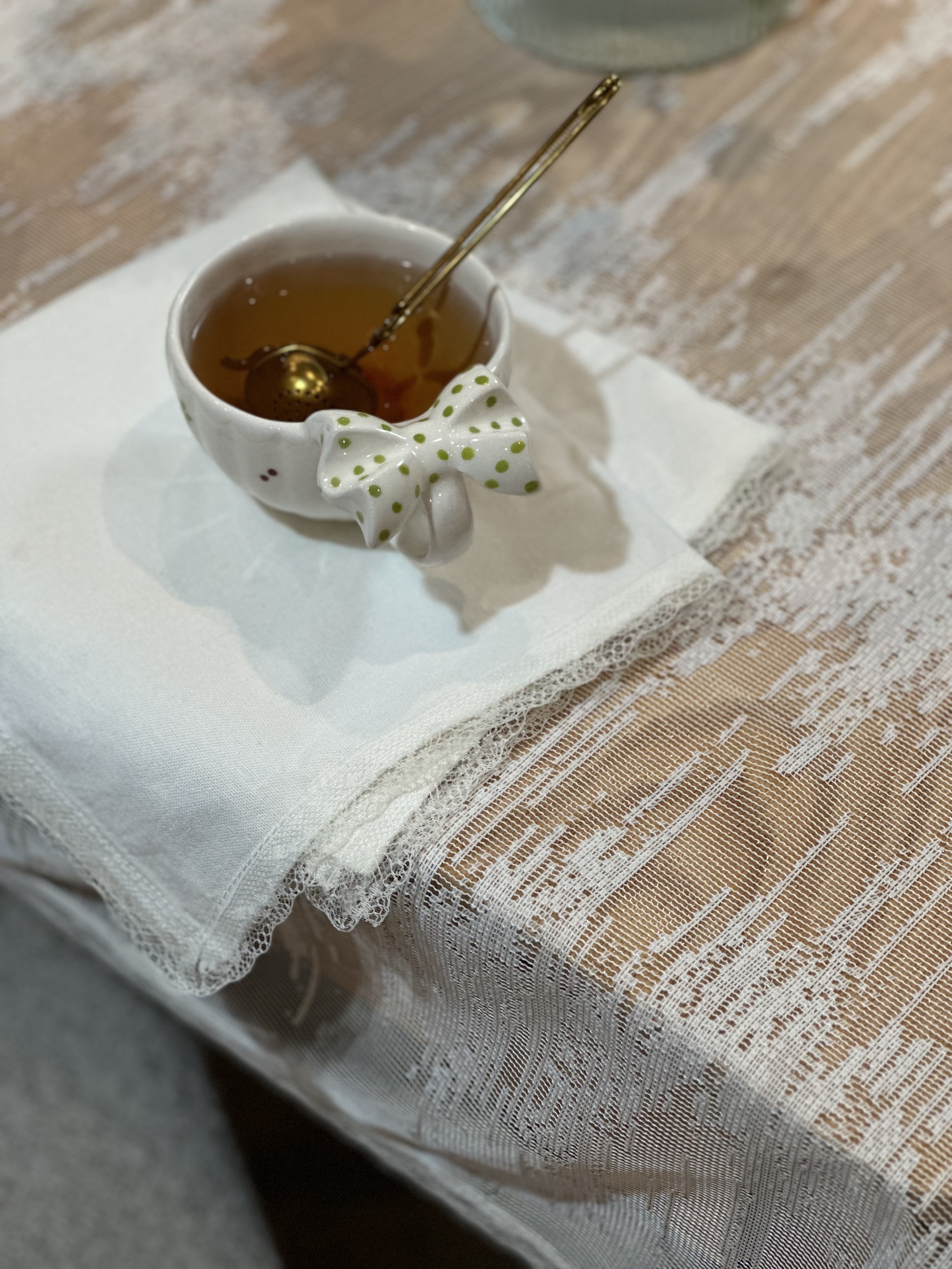 رومیزی توری طرح پتینه نواردوزی شده